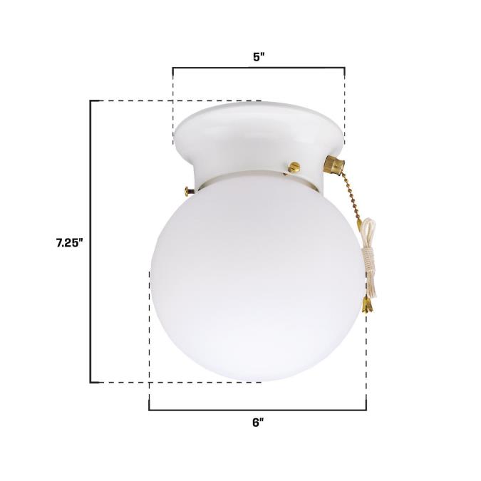 The fixture has a flush-mount design that makes it suited to low- and high-ceilinged rooms alike. Perfect for closets and other areas without a light switch, the fixture includes a pull chain for easy operation. Additionally, its compact size makes it ideal for smaller spaces.