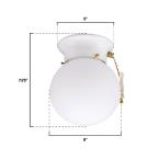 A practical and affordable choice for your basic lighting needs, this one-light flush-mount ceiling fixture provides even, ample illumination thanks to its white glass globe. Offering a minimalist design, the fixture also features a simple base with polished brass finish that complements any decor.