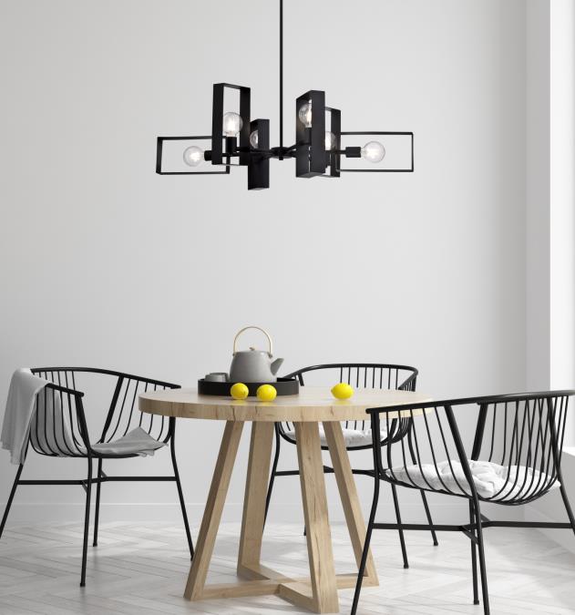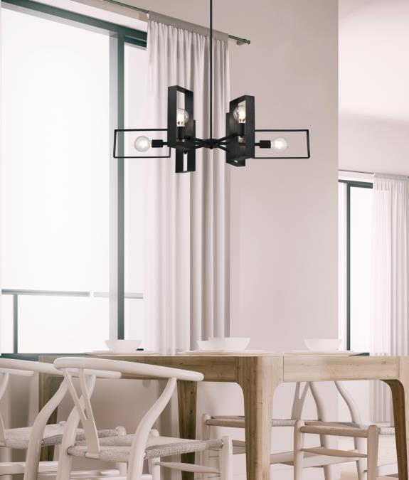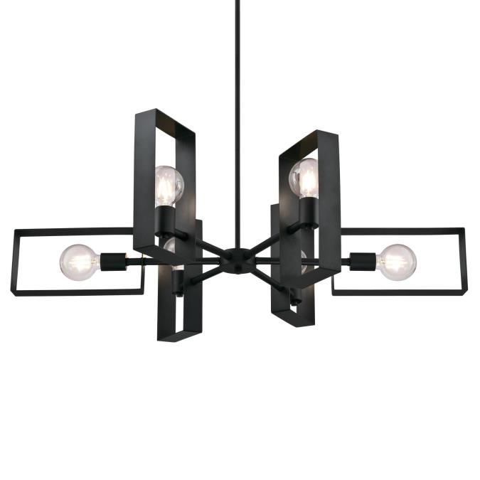 - Matte black finish complements any decor, making the Porter suitable as an industrial chandelier or a modern chandelier