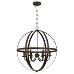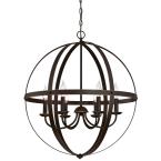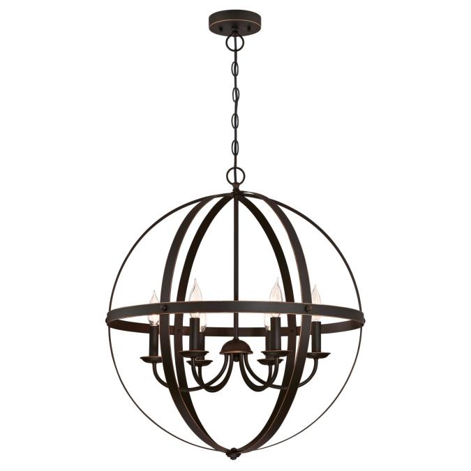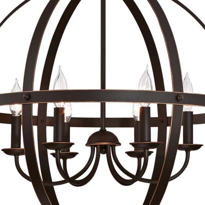 Oil rubbed bronze finish adds a vintage-industrial touch to this six-light spherical chandelier. Its grand size draws attention to the classic candelabra glowing inside. Ideal for dining rooms, entryways and open-concept living spaces, the beautiful metal orb is designed to create a feeling of openness.