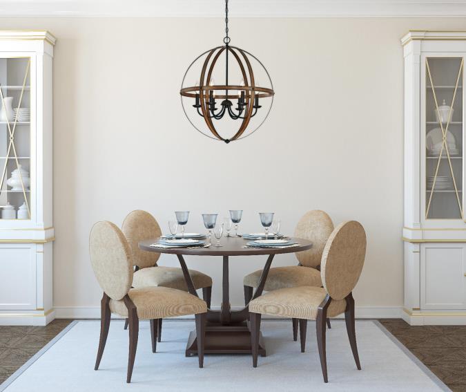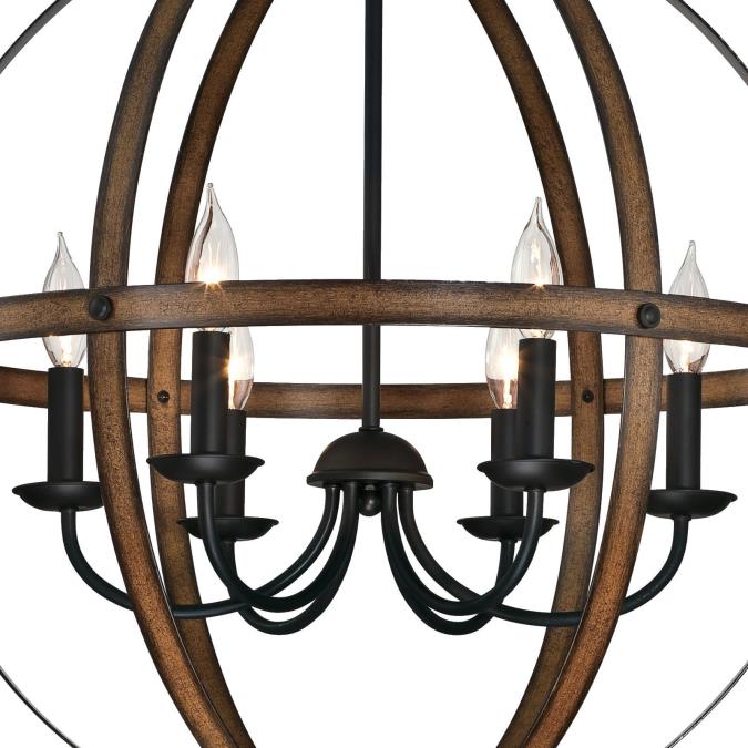 - Attractive blend of barnwood and oil rubbed bronze finishes enhances the vintage quality of the chandelier