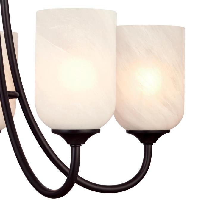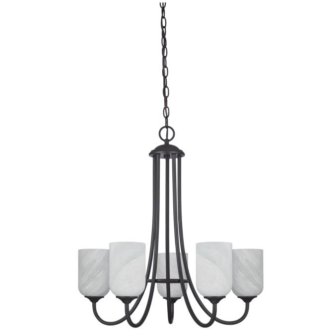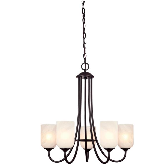 Add an elegant centerpiece to your decor with the Treebridge Station five-light chandelier. With its sweeping arms, espresso finish, and white alabaster glass shades, the chandelier offers a cultivated aesthetic for your home.
