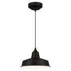 One-light indoor pendant with integrated LED, installation instructions and mounting hardware.