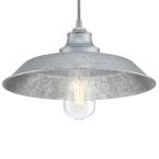 - Vintage-style pendant features a galvanized steel finish to complement modern, industrial, and farmhouse interiors