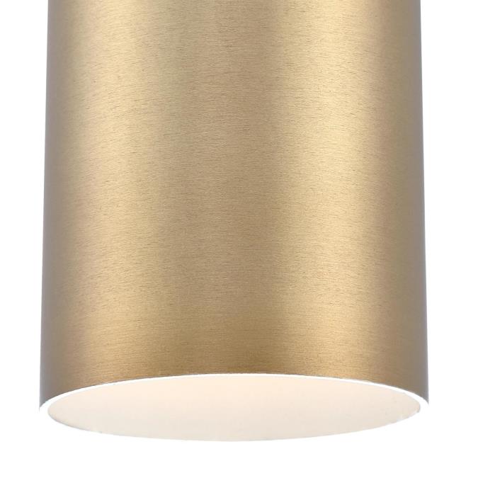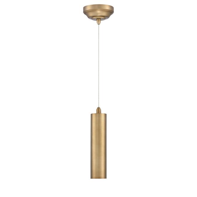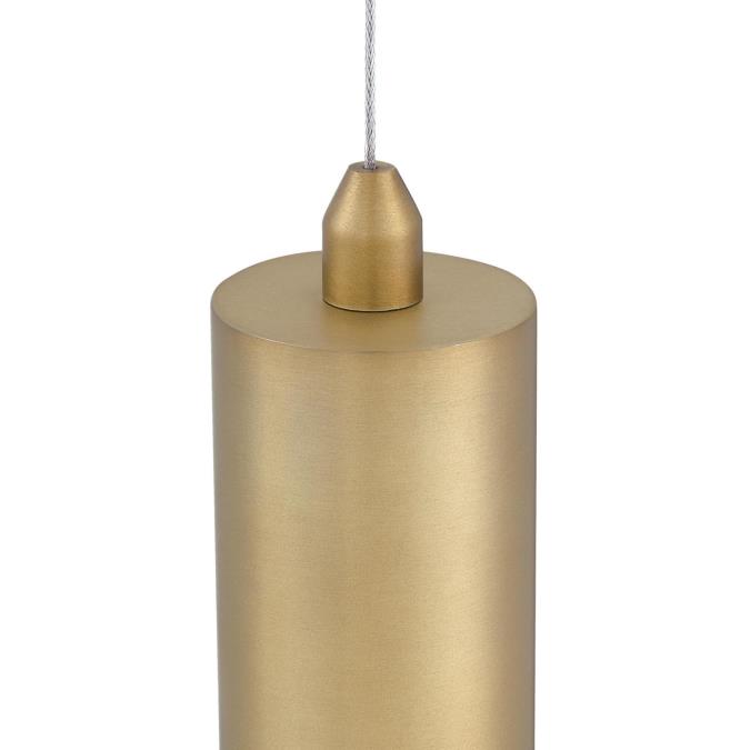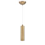 Easily illuminate your space with this sophisticated and sleek LED mini pendant lighting. The adjustable one-light pendant features a brushed brass, cylinder shade hanging from a slender cord, and matching canopy. This energy-saving LED fixture provides illumination for many years, thanks to long-lasting LED light technology.