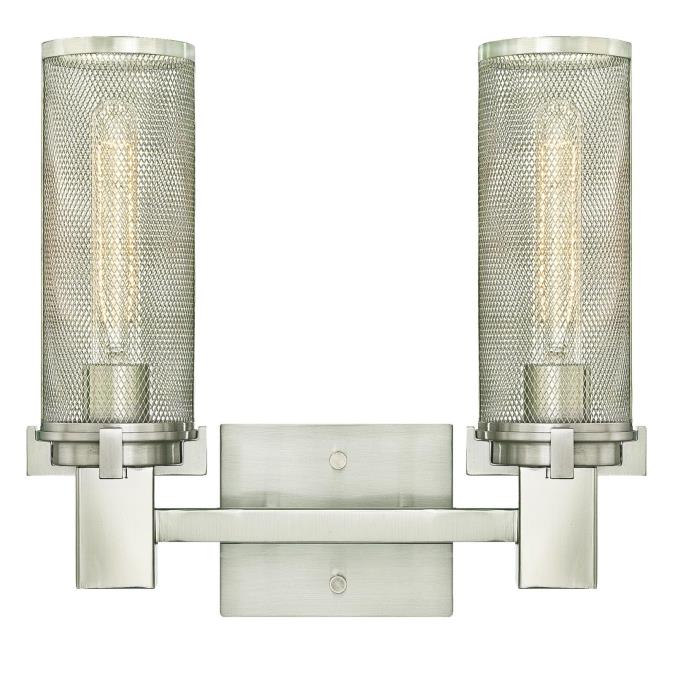 Add personality and style to any home with the Adler two-light wall fixture. Sleek, mesh cylinder shades illuminate with dramatic effect. An eye-catching accent, this fixture features an elegant brushed nickel finish.