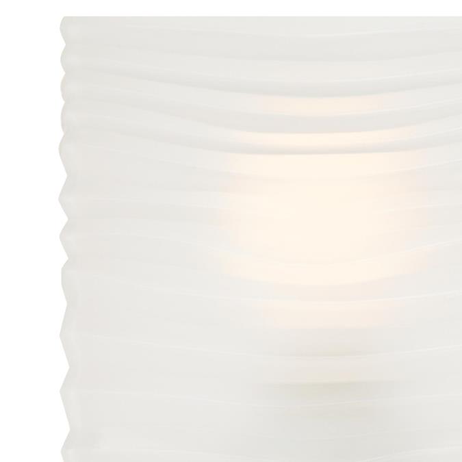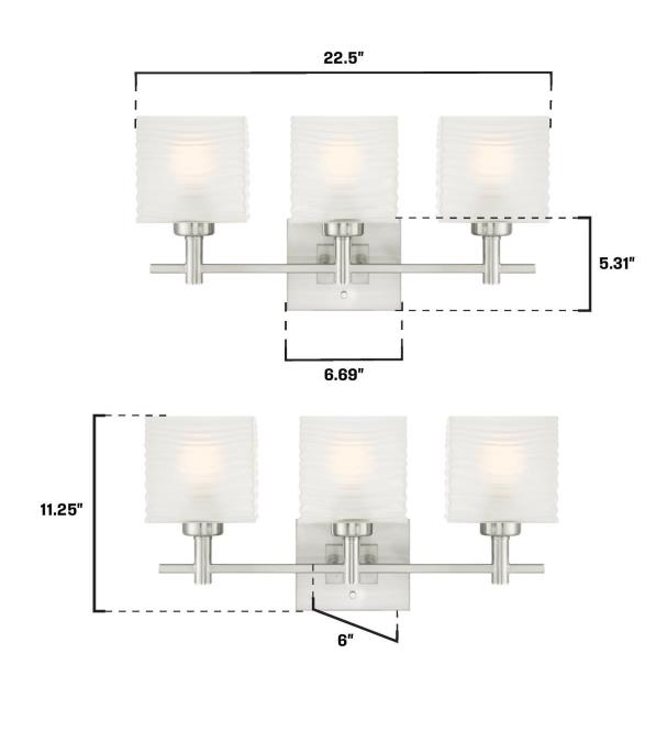 Add personality and light to any home with the Alexander three-light wall fixture's distinctive patterned glass and clean lines. A sparkling accent in a bathroom or over a vanity, this fixture is designed with a beautiful brushed nickel finish and rippled white glazed glass.
