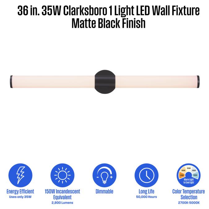 Transform your space with the Westinghouse Lighting 36-inch Clarksboro wall light, where style meets innovation. Enjoy energy-efficient lighting with integrated LED technology and customizable ambiance through five color temperature settings. Whether you desire a cozy warm white glow or an invigorating bright daylight, this fixture adapts to your needs effortlessly.