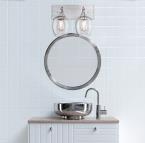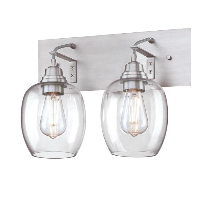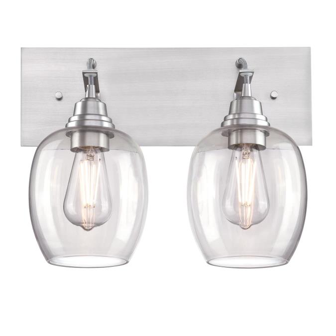 - The Eldon two-light bathroom light fixture features a brushed aluminum finish perfect for any decor from modern to farmhouse