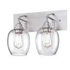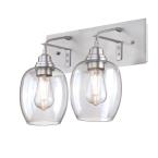 The Eldon two-light vanity light fixture's unique style features braided cord and generously proportioned glass shades, offering a refreshing spin on the vintage-style trend. Brushed aluminum adds modern industrial appeal and hand blown clear glass is the perfect complement to the fixture's simplistic lines.
