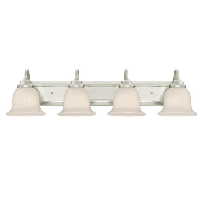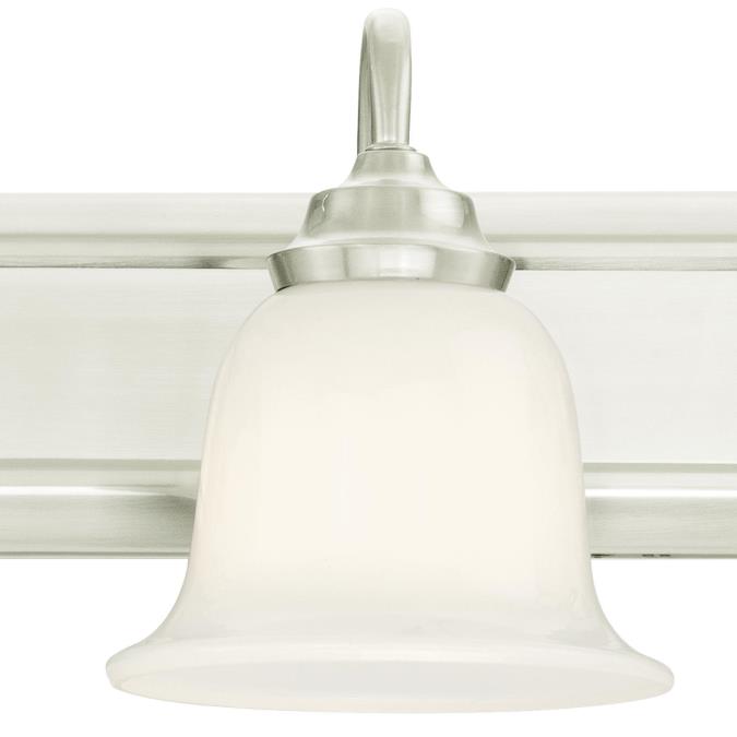 Modest details and effortless style are what create this fixture's time-honored appeal. The Harwell four-light wall fixture is highlighted by a sparkling brushed nickel finish and the radiant glow of white opal glass.