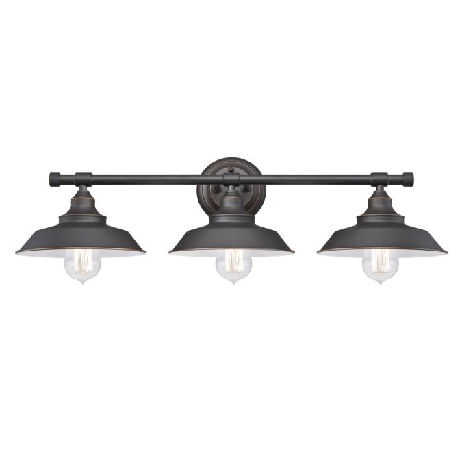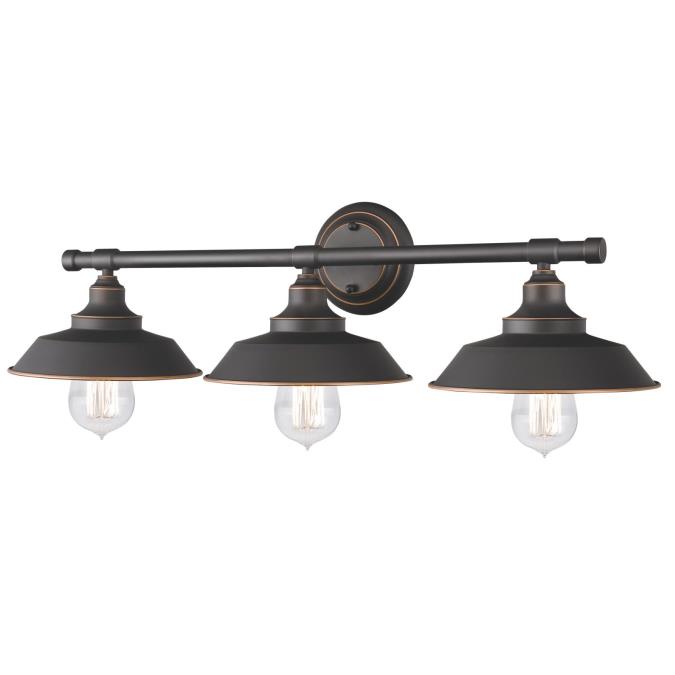 Industrial yet vintage, the Iron Hill three-light wall fixture is perfect for a multitude of design styles, from modern living spaces to farmhouse kitchens. Oil rubbed bronze finish with rich bronze highlights adds a rustic farmhouse appeal.