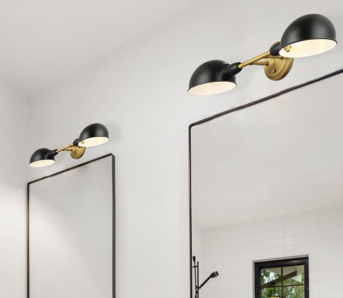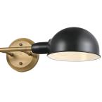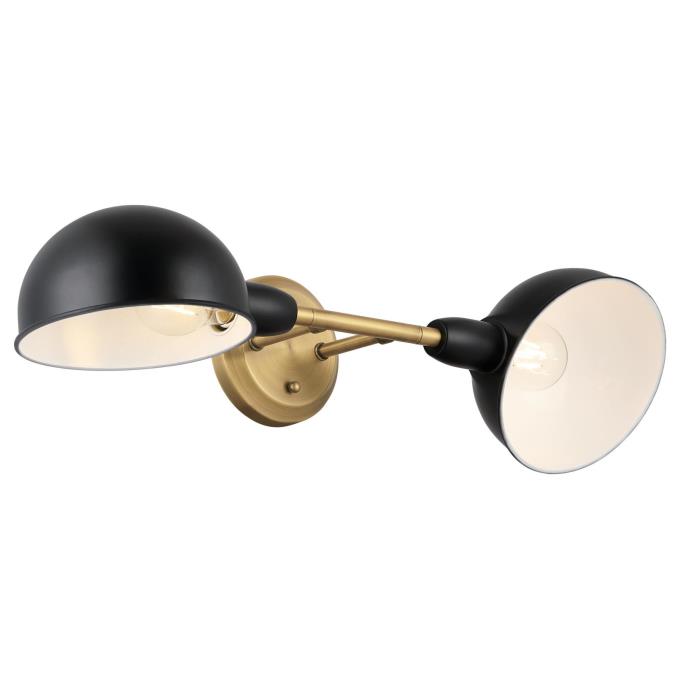 The Langhorne's simplicity complements mid-century modern style homes, and its functional swivel heads offer ideal task light for any interior. This two-light wall fixture makes a lasting fashion statement with a two-tone finish of brushed brass and matte black. Each half globe rotates and includes a white interior casting a luminous glow in the desired direction.