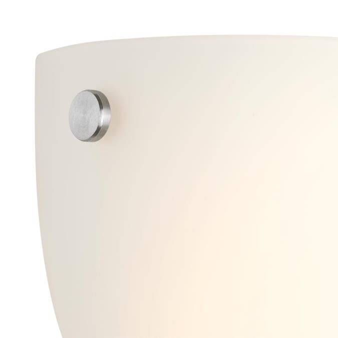 - A modest yet versatile design in a brushed nickel finish with a frosted shade is suitable for various indoor spaces and decor
