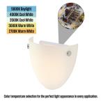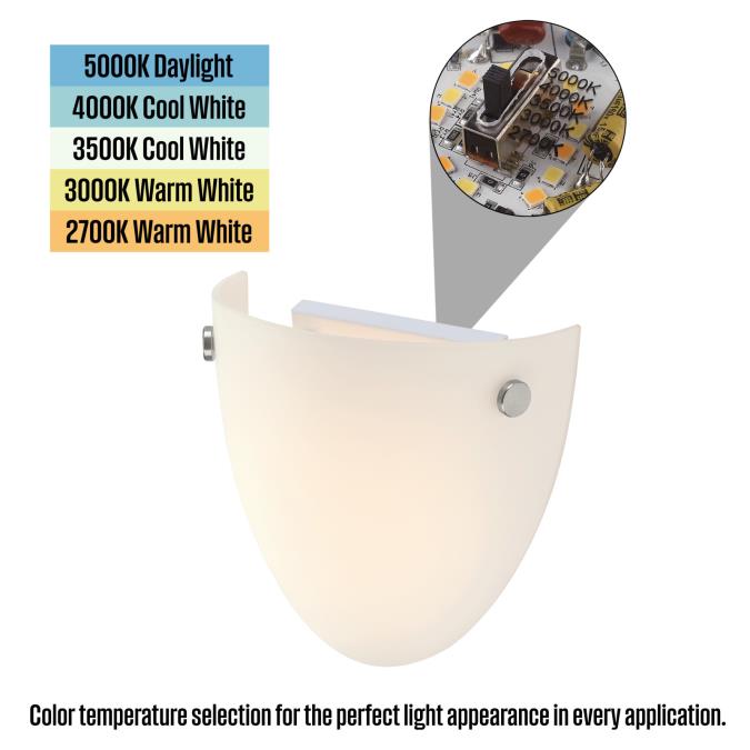 Integrated LED indoor wall sconce with color temperature selection, installation instructions, and mounting hardware.