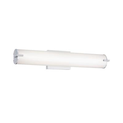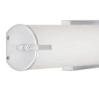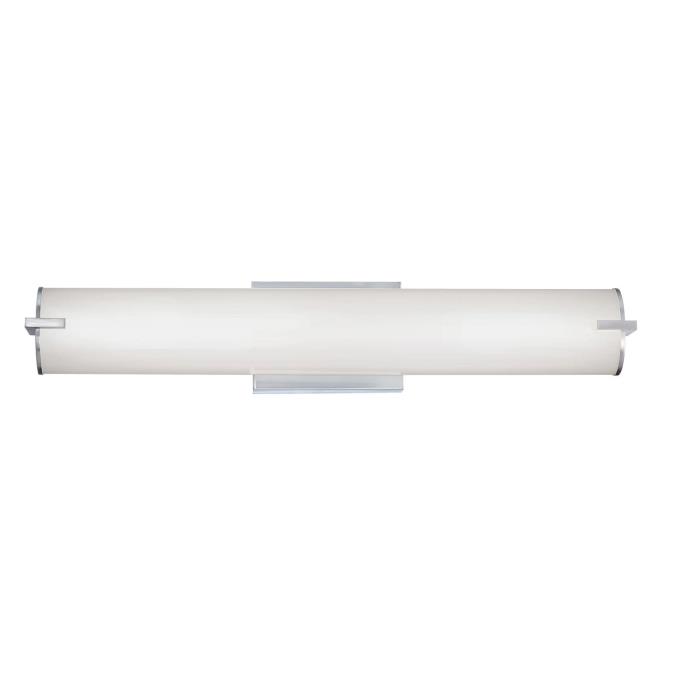 Integrated LED provides years of maintenance free, energy-efficient illumination, dimmable to accommodate your needs. Curved frosted acrylic shade is enhanced with brushed nickel details to beautifully illuminate a vanity or brighten a hallway.