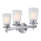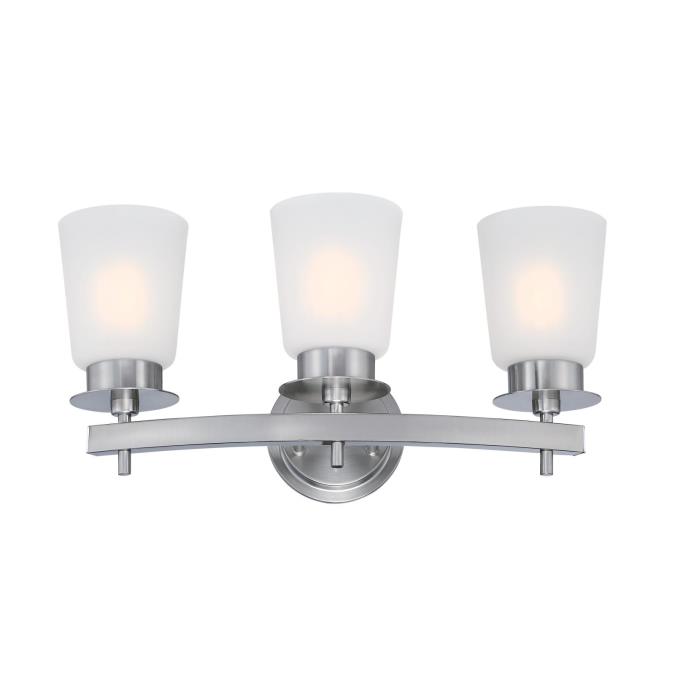 The Reynaldo vanity light in a lustrous brushed nickel finish makes a sophisticated statement in powder rooms, hallways, and bathrooms. Extravagant frosted glass shades add elegance and shine.