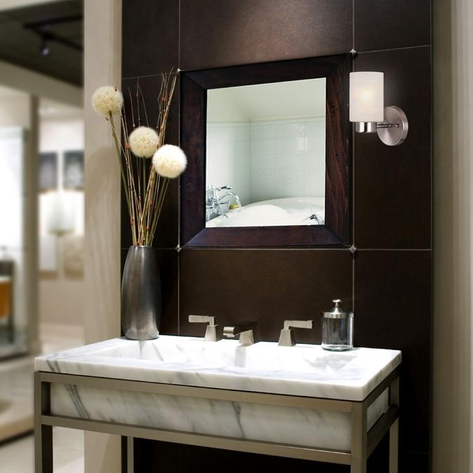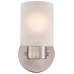 With its modern design and radiant lighting, the Sylvestre one-light wall fixture brings style and elegance to your home. This fixture features a cylindrical design, a frosted seeded glass shade, and a sleek brushed nickel finish that complements a variety of interior styles.