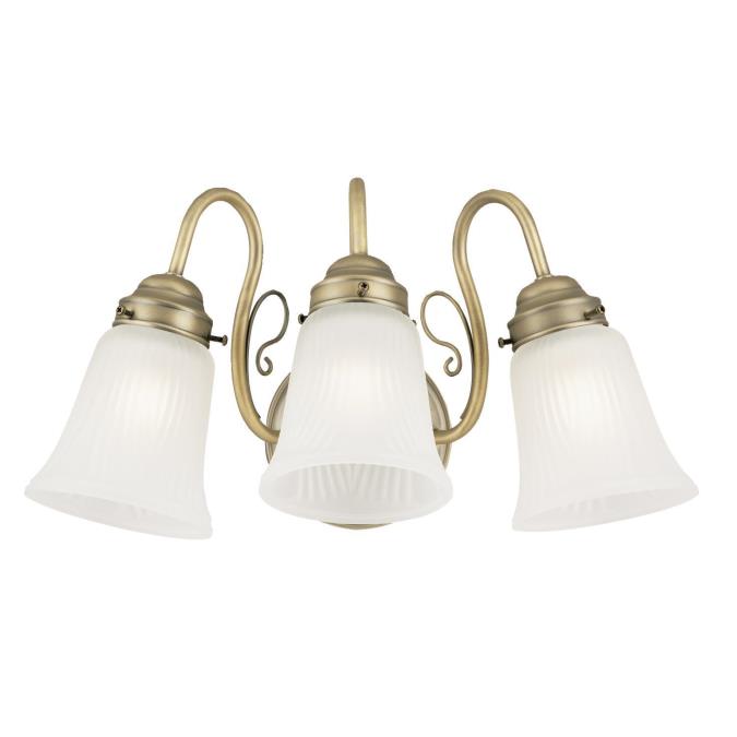 This willowy three-light interior wall fixture is a veritable work of art, with three serpentine arms embellished by delicate scroll accents and a warm oyster bronze finish. The frosted ribbed design glass adds distinctive texture and soft illumination to any environment.