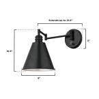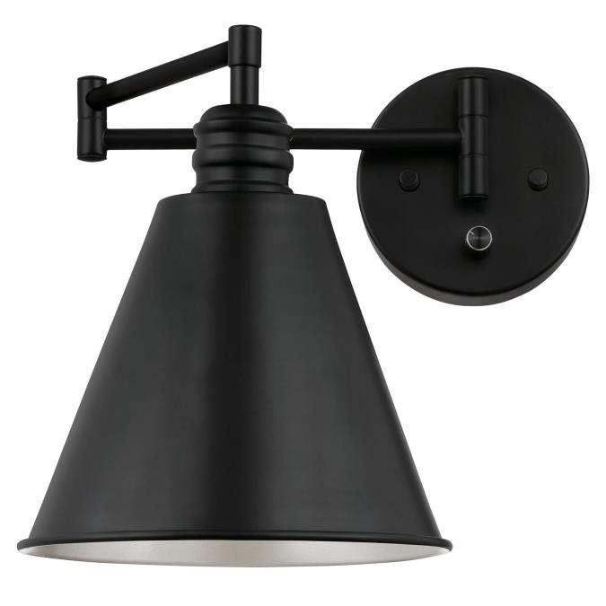 With this swing arm wall sconce, you'll get practical lighting and traditional style in one. The matte black finish generates a sleek allure, and a silver interior reflects light downward, perfect for reading. This sconce features a swing arm, so you can control light direction as needed. A convenient on/off switch is on the backplate.