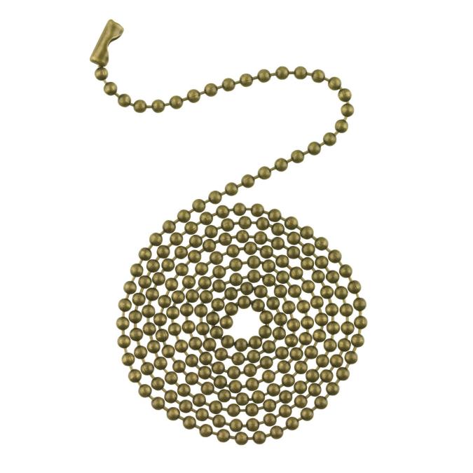With its classic, uncomplicated style, this antique brass beaded chain with connector goes well with most decors. The rich antique brass connector, fixed to the end of a 3-foot beaded chain, can be used to form a chain loop handle or to add an additional chain to extend the length. This makes an ideal replacement for broken or outdated pull chains.