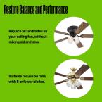 Easily replace worn or broken fan blades on your existing ceiling fan with this replacement fan blade set. Each 5 piece set is precisely matched to restore balance and performance. For best results, it is important to replace all the fan blades on your ceiling fan, without mixing old and new. Suitable for use on fans with 5 or less blades.