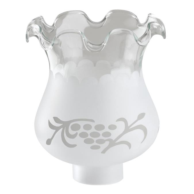 This handblown frosted etched shade makes a lovely addition to your home's decor, thanks to an hourglass shape and etched grape design. A ruffled edge and smooth blend of frosted and clear glass give this shade considerable charm.