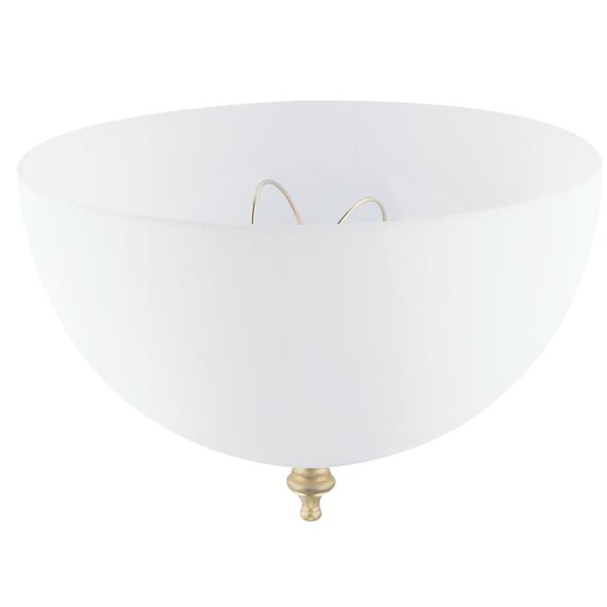 It's easier than changing a light bulb. Create a fixture just about anywhere with this acrylic white dome clip-on shade. The durable white acrylic goes well with most decors and filters soft light. The shade features a small brass finial at the bottom for a charming accent.