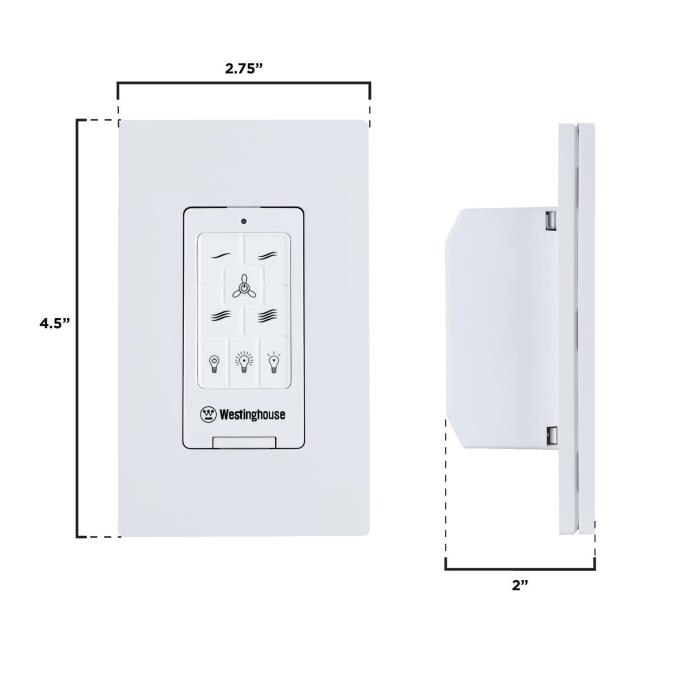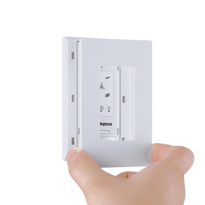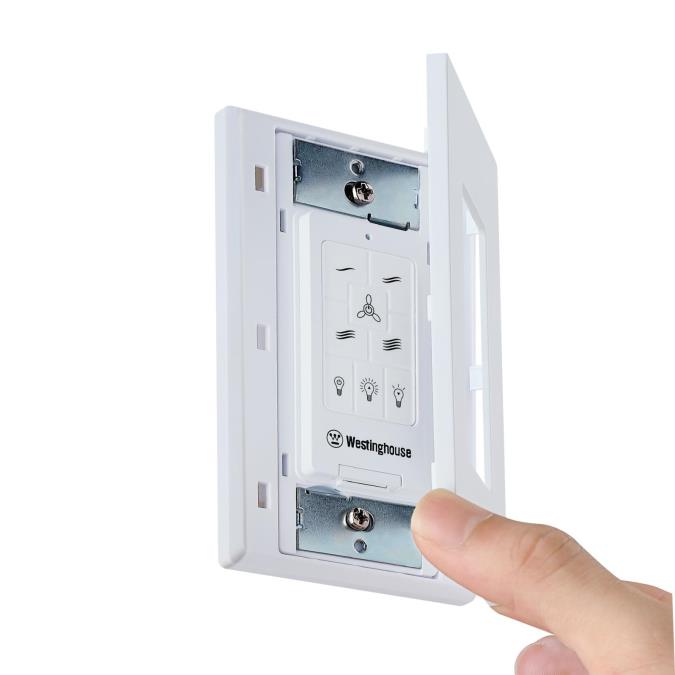 - Ceiling fan wall control with snap-on, decorative wall plate covers all hardware and seamlessly blends into the room
