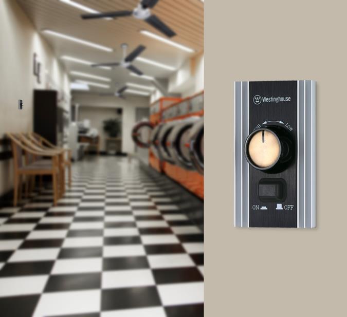 This ceiling fan rotary wall control replaces a standard wall control for the convenient operation of multiple Jax ceiling fans offering limitless variable speeds and easy on/off push-button control. Fully capable of supporting up to 8 amps, enough for 12 Jax industrial-style ceiling fans.