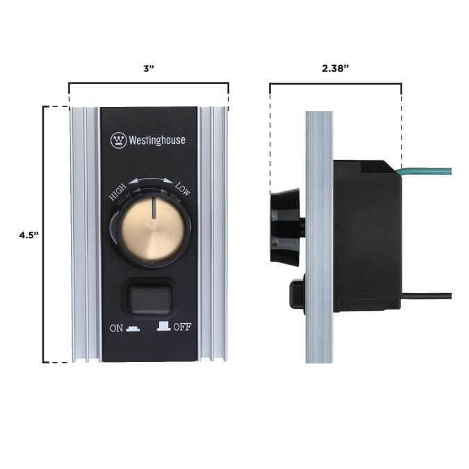 - Ceiling fan wall control with decorative wall plate covers all hardware with a sleek, modern appearance