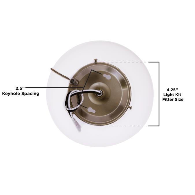 MULTIPLE LOCATIONS: Ideal for both indoor and outdoor ceiling fans; perfect for adding or replacing a light kit.CLASSIC STYLE: Features a traditional design with schoolhouse glass and an antique brass finish.LIGHTING SOURCE: Omni A19 bulb that emits a warm white light at 3000K.EASY INSTALLATION: Fits most standard 42–52 inch ceiling fans with a center hole in the housing cap.DIMENSIONS: 6¾ inches high, 8¼ inches wide, and the Light Kit Fitter has a diameter of 4¼ inches.