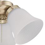 The light kit features an elegant polished brass finish and the frosted ribbed glass shades emit bright, beautiful illumination. The traditional design blends well with a variety of indoor ceiling fan styles.