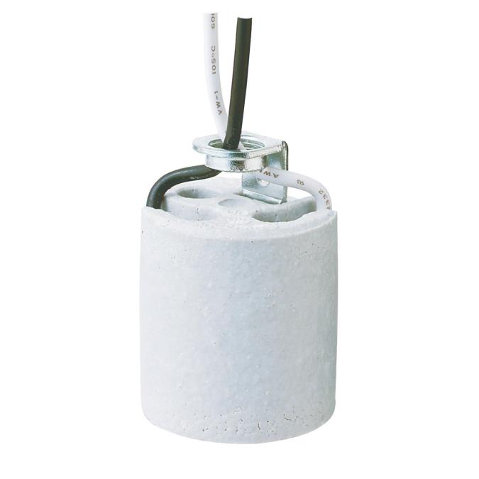 Whether you're looking to replace a worn or broken socket or assemble a new light fixture, this porcelain fixture socket makes an ideal choice. The durable porcelain construction is complemented by two 18-gauge, 10-inch wire leads that offer protection up to 105 degrees and a convenient 1/8-IP hickey for easy installation.