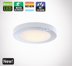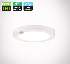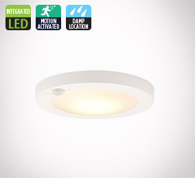 6 in. 7W LED Surface Mount with Motion Sensor White Finish White Frosted Shade 3000K