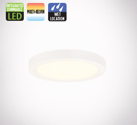 7.5 in. 16W Dimmable LED Surface Mount with Color Temperature Selection White Finish Frosted Acrylic Shade 2700K/3000K/35000K/4000K/5000K