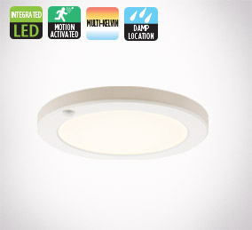 9 in. 18W LED Surface Mount with Motion Sensor and Color Temperature Selection White Finish White Acrylic Shade 2700K/3000K/3500K/4000K/5000K