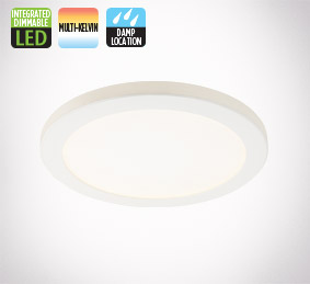 9 in. 18W Dimmable LED Surface Mount with Color Temperature Selection White Finish Frosted Polycarbonate Shade 2700K/3000K/35000K/4000K/5000K