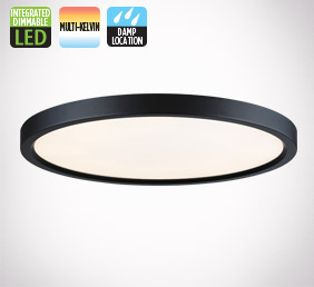 15 in. 30W Dimmable LED Surface Mount with Color Temperature Selection Black Finish White Acrylic Shade 2700K/3000K/3500K/4000K/5000K