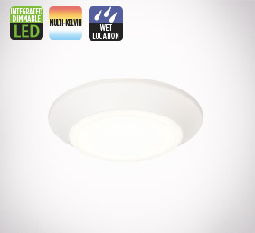 6 in. 8W Dimmable LED Surface Mount with Color Temperature Selection White Finish Frosted Polycarbonate Shade 2700K/3000K/35000K/4000K/5000K