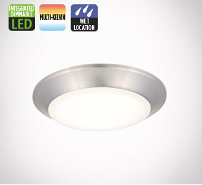 7.5 in. 16W Dimmable LED Surface Mount with Color Temperature Selection Brushed Nickel Finish Frosted Acrylic Shade 2700K/3000K/35000K/4000K/5000K