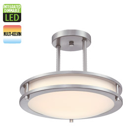 12 in. 15W LED Semi-Flush with Color Temperature Selection Brushed Nickel Finish Frosted Acrylic Shade 2700K/3000K/3500K/4000K/5000K