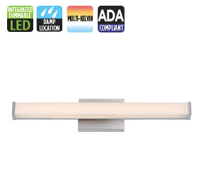 25W 1 Light LED Wall Fixture with Color Temperature Selection Brushed Nickel Finish Frosted Acrylic Shade 2700K/3000K/3500K/4000K/5000K