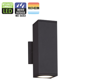 Dimmable LED Up and Down Light Wall Fixture with Color Temperature Selection Black Finish Frosted Glass Panels 3000K/4000K/5000K