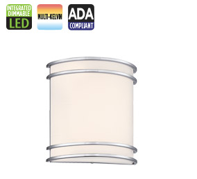 15W 1 Light LED Wall Fixture with Color Temperature Selection Brushed Nickel Finish Frosted Acrylic Shade 2700K/3000K/3500K/4000K/5000K