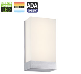 9W 1 Light LED Wall Fixture with Color Temperature Selection Brushed Nickel Finish Frosted Glass 2700K/3000K/3500K/4000K/5000K