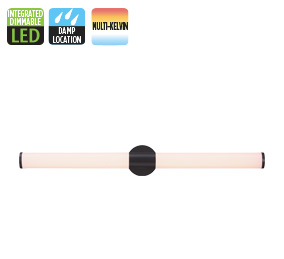 26W 1 Light LED Wall Fixture with Color Temperature Selection Matte Black Finish Frosted Acrylic Shade 2700K/3000K/3500K/4000K/5000K