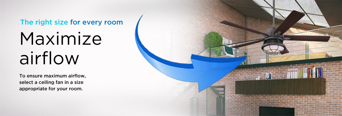 In order to ensure energy-efficient operation, make sure the size of the ceiling fan is appropriate for the size and height of your room.
